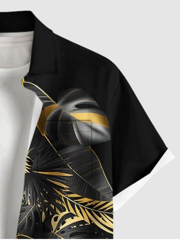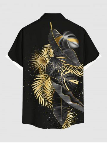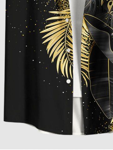 Plus Size Metallic Tropical Leaf Print Buttons Pocket Hawaii Shirt For Men - Black - S