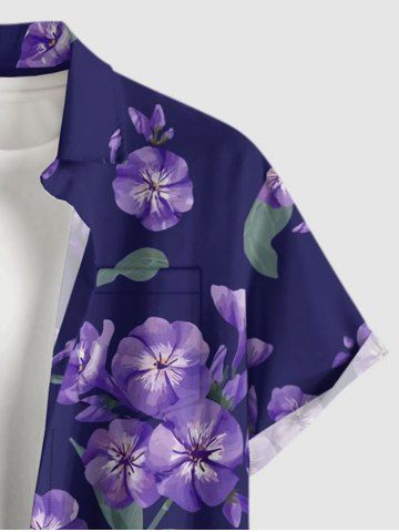 Plus Size Morning Glory Flower Leaf Print Hawaii Button Pocket Shirt For Men - Concord - 5xl