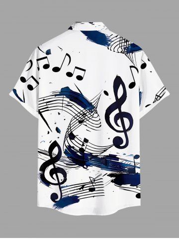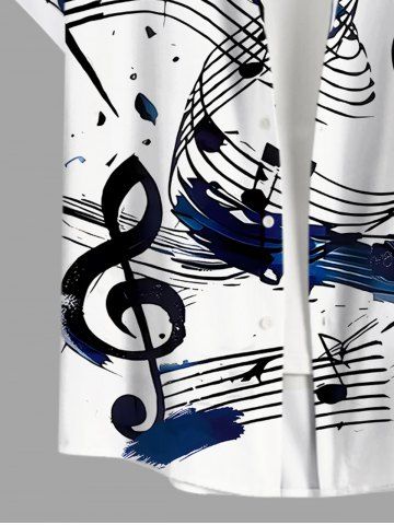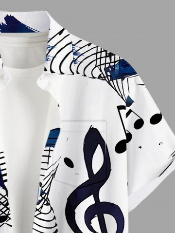 Plus Size Musical Notation Print Buttons Pocket Hawaii Shirt For Men - White - 6xl