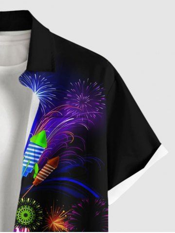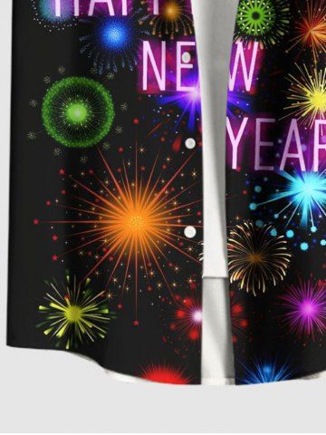 Plus Size New Years Party Colorful Fireworks Letters Print Buttons Pocket Shirt For Men - Black - S