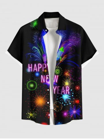 Short Sleeves Shirts > Plus Size New Years Party Colorful Fireworks Letters Print Buttons Pocket Shirt For Men