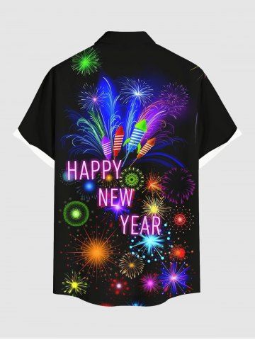 Plus Size New Years Party Colorful Fireworks Letters Print Buttons Pocket Shirt For Men - Black - 4xl