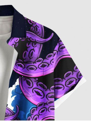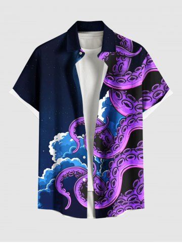 Short Sleeves Shirts > Plus Size Octopus Cloud Print Hawaii Button Pocket Shirt For Men