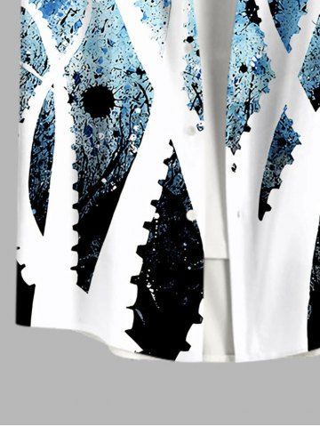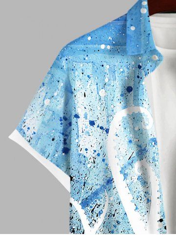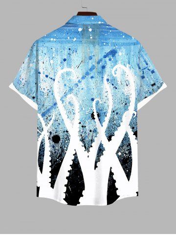 Plus Size Octopus Ink Painting Splatter Tie Dye Print Hawaii Button Pocket Shirt For Men - Blue - Xl