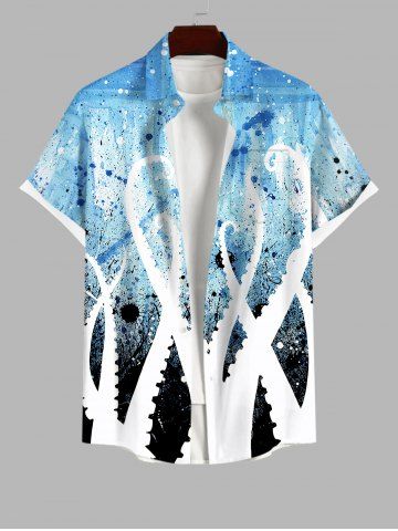 Plus Size Octopus Ink Painting Splatter Tie Dye Print Hawaii Button Pocket Shirt For Men - Blue - 4xl