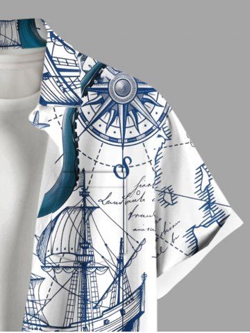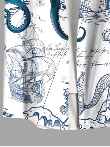 Short Sleeves Shirts > Plus Size Octopus Mermaid Boat Cruise Print Buttons Pocket Hawaii Shirt For Men