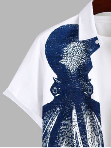 Plus Size Octopus Print Buttons Pocket Hawaii Shirt For Men - White - M