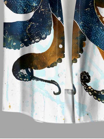Plus Size Octopus Print Buttons Pocket Hawaii Shirt For Men - White - Xl