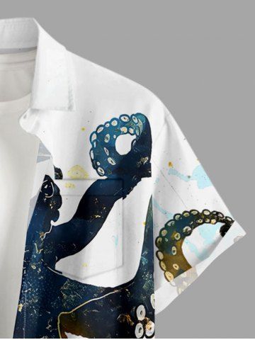 Plus Size Octopus Print Buttons Pocket Hawaii Shirt For Men - White - 4xl