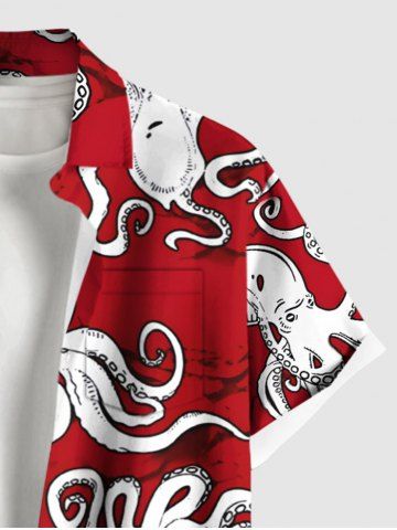 Plus Size Octopus Print Hawaii Button Pocket Shirt For Men - Red - M