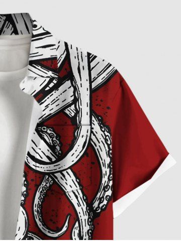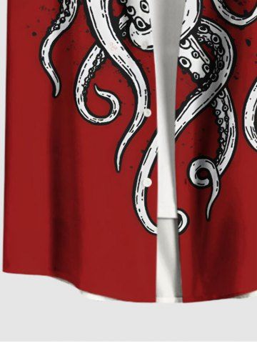 Plus Size Octopus Print Hawaii Button Pocket Shirt For Men - Red - 2xl