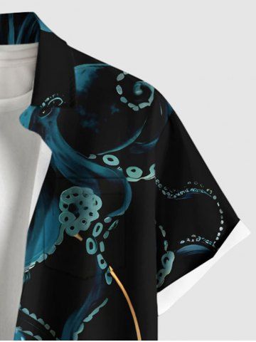 Plus Size Octopus Print Hawaii Button Pocket Shirt For Men - Black - 4xl