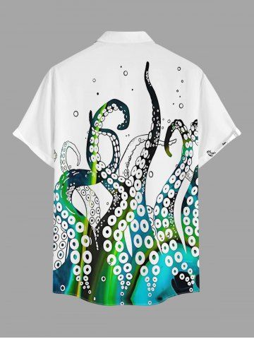 Plus Size Octopus Print Hawaii Button Pocket Shirt For Men - White - S