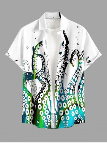 Plus Size Octopus Print Hawaii Button Pocket Shirt For Men - White - L