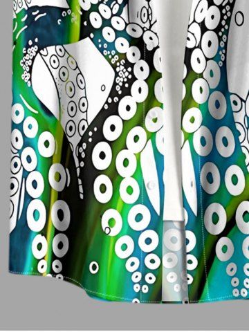 Plus Size Octopus Print Hawaii Button Pocket Shirt For Men - White - 5xl