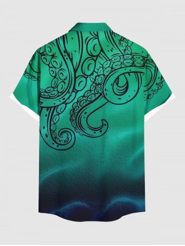 Plus Size Octopus Print Hawaii Ombre Button Pocket Shirt For Men - Green - M