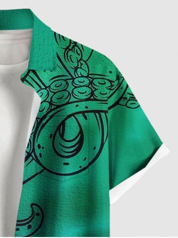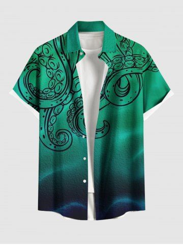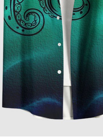 Plus Size Octopus Print Hawaii Ombre Button Pocket Shirt For Men - Green - 2xl