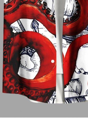 Plus Size Octopus Sailboat Print Hawaii Cruise Button Pocket Shirt For Men - White - 3xl