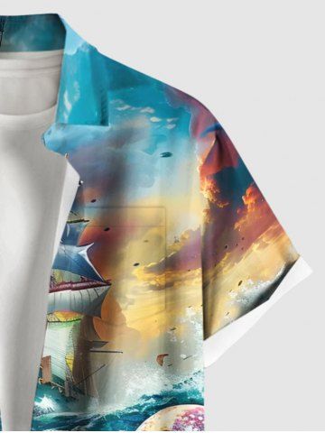 Short Sleeves Shirts > Plus Size Octopus Sea Waves Sailboat Ombre Sky Print Hawaii Cruise Button Pocket Shirt For Men