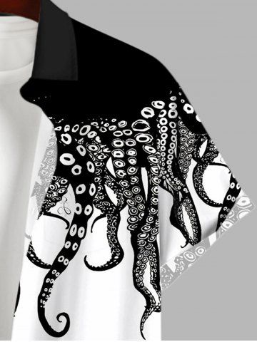 Plus Size Octopus Two Tone Print Button Pocket Shirt For Men - Black - M