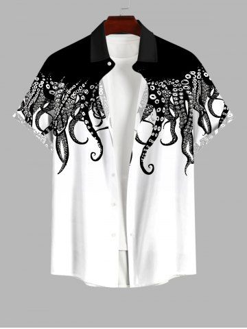 Short Sleeves Shirts > Plus Size Octopus Two Tone Print Button Pocket Shirt For Men