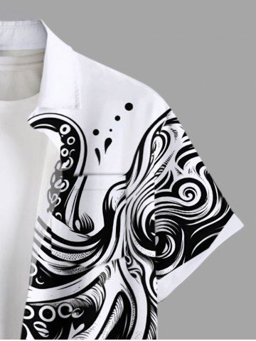 Plus Size Octopus Two Tone Print Hawaii Button Pocket Shirt For Men - White - 2xl