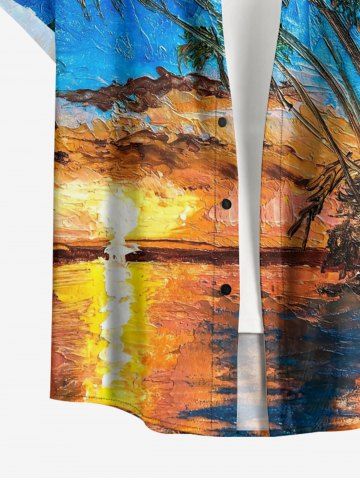 Short Sleeves Shirts > Plus Size Oil Painting Coconut Tree Seascape Cloud Print Buttons Pocket Hawaii Shirt For Men