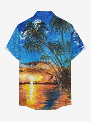 Short Sleeves Shirts > Plus Size Oil Painting Coconut Tree Seascape Cloud Print Buttons Pocket Hawaii Shirt For Men