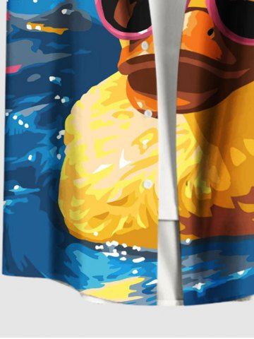 Plus Size Oil Painting Rock Ducks Print Buttons Pocket Shirt For Men - Blue - L