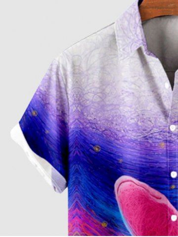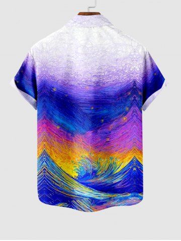 Short Sleeves Shirts > Hawaii Plus Size Oil Painting Shark Sun Sea Creatures Waves Print Buttons Pocket Shirt For Men