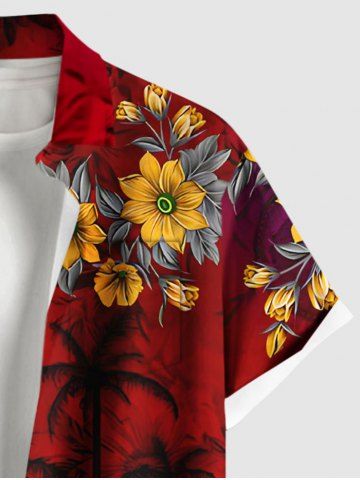 Plus Size Ombre Coconut Tree Flower Print Hawaii Button Pocket Shirt For Men - Red - 3xl