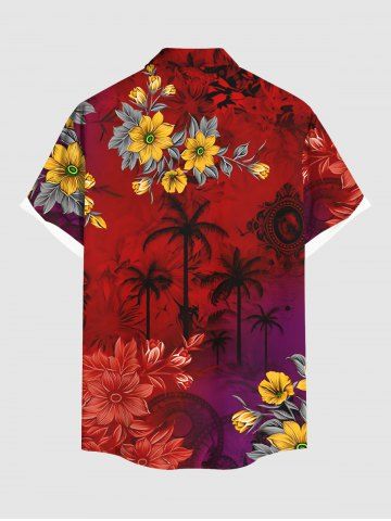 Plus Size Ombre Coconut Tree Flower Print Hawaii Button Pocket Shirt For Men - Red - 5xl