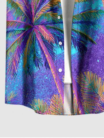 Plus Size Ombre Coconut Tree Moon Print Hawaii Button Pocket Shirt For Men - Light Purple - Xl