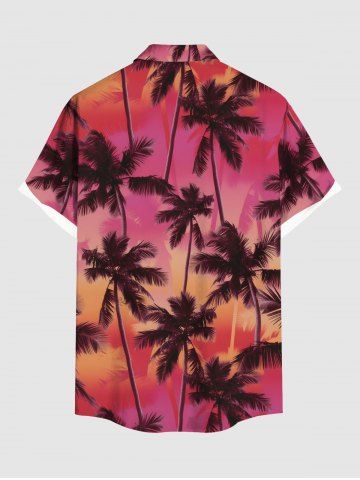 Plus Size Ombre Coconut Tree Print Hawaii Button Pocket Shirt For Men - Red - S