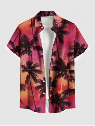 Plus Size Ombre Coconut Tree Print Hawaii Button Pocket Shirt For Men - Red - 5xl