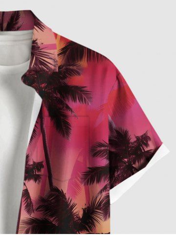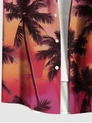 Plus Size Ombre Coconut Tree Print Hawaii Button Pocket Shirt For Men - Red - 6xl