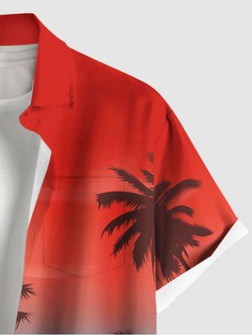 Plus Size Ombre Colorblock Coconut Tree Print Buttons Pocket Hawaii Shirt For Men - Red - M