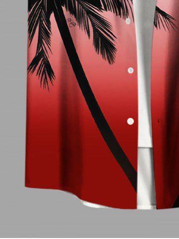 Plus Size Ombre Colorblock Coconut Tree Print Buttons Pocket Hawaii Shirt For Men - Red - 4xl