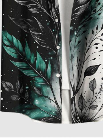 Plus Size Ombre Colorblock Leaf Ink Splatter Print Buttons Pocket Hawaii Shirt For Men - Black - 6xl