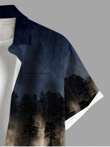 Plus Size Ombre Colorblock Mountain Trees Print Buttons Pocket Hawaii Shirt For Men - Blue - 3xl