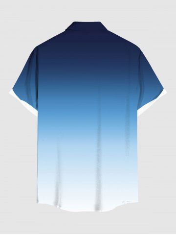 Plus Size Ombre Colorblock Print Buttons Pocket Shirt For Men - Blue - 5xl