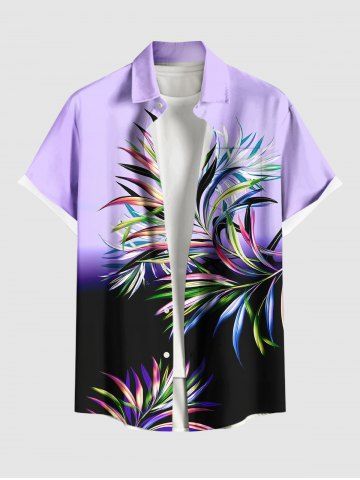 Plus Size Ombre Colorblock Tropical Leaf Print Buttons Pocket Hawaii Shirt For Men - Purple - 6xl