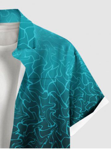 Short Sleeves Shirts > Plus Size Ombre Colorblock Water Ripples Print Buttons Pocket Hawaii Shirt For Men