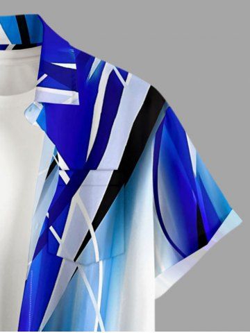 Plus Size Ombre Curve Print Hawaii Button Pocket Shirt For Men - Blue - M