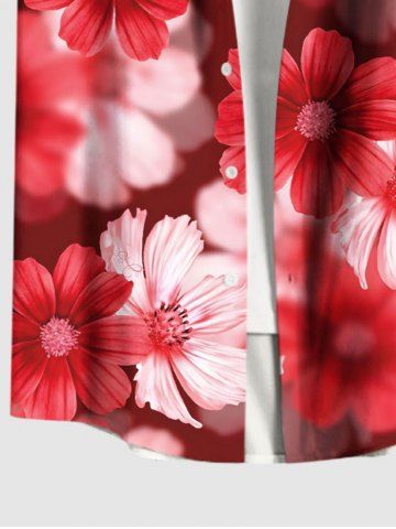Plus Size Ombre Daisy Flower Print Hawaii Button Pocket Shirt For Men - Red - 6xl