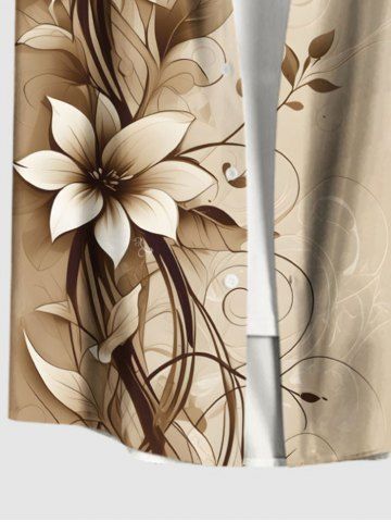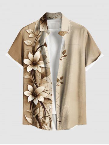 Plus Size Ombre Floral Branch Curve Print Hawaii Button Pocket Shirt For Men - Light Coffee - 6xl