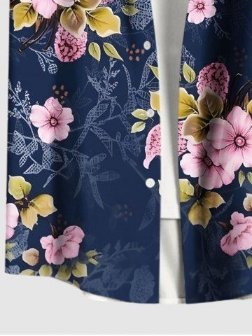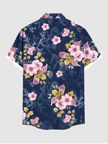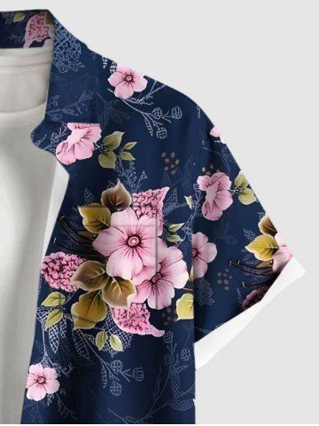 Plus Size Ombre Flower Leaf Branch Print Hawaii Button Pocket Shirt For Men - Deep Blue - S