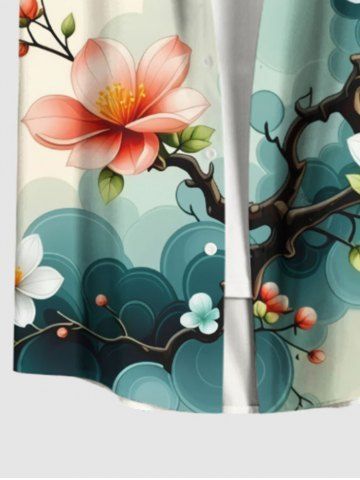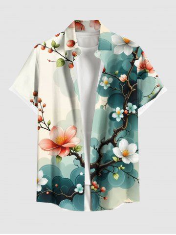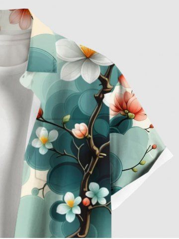 Short Sleeves Shirts > Plus Size Ombre Floral Tree Branch Print Hawaii Button Pocket Shirt For Men