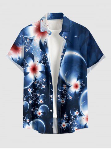 Plus Size Ombre Flower Bubble Print Hawaii Button Pocket Shirt For Men - Deep Blue - 3xl