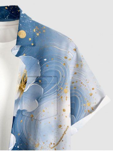 Plus Size Ombre Flower Galaxy Print Hawaii Button Pocket Shirt For Men - Blue - Xl